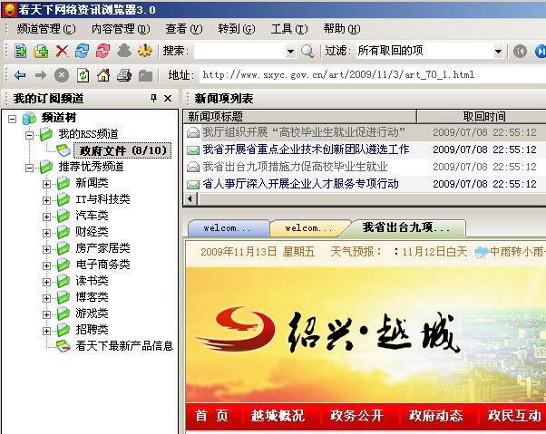 | 您一般需要下载和安装一个 RSS信息阅读器,然后从网站提供的聚合信息目录列表中订阅您感兴趣的信息栏目的内容。订阅后,您将会及时获得所订阅信息频道的最新内容。 |